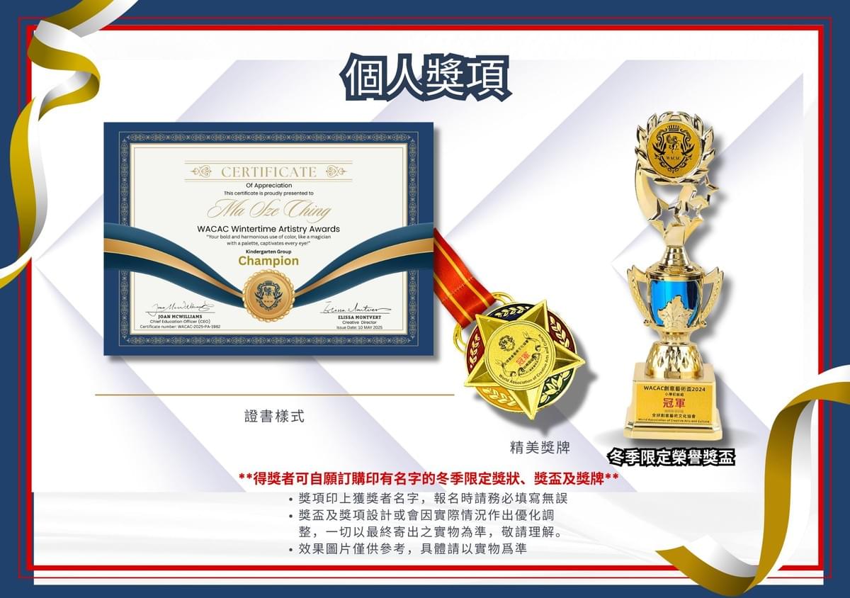 **得獎者可自願訂購印名冬季限定獎狀、獎盃及獎牌**